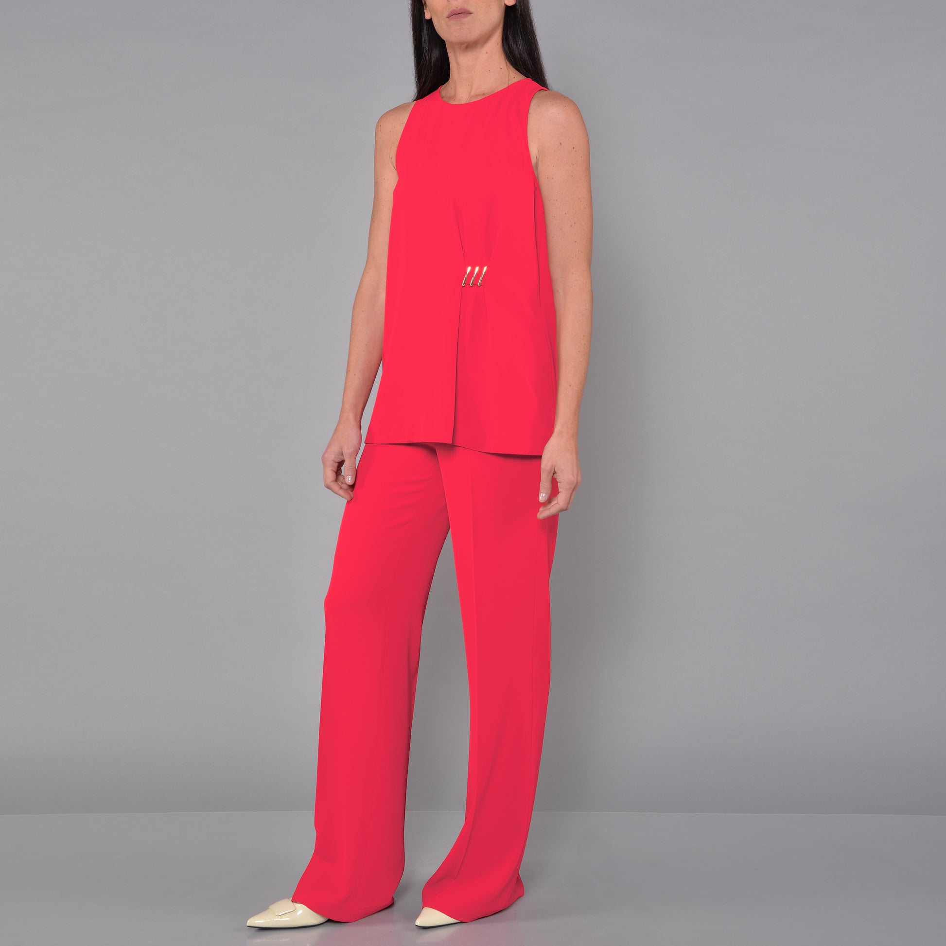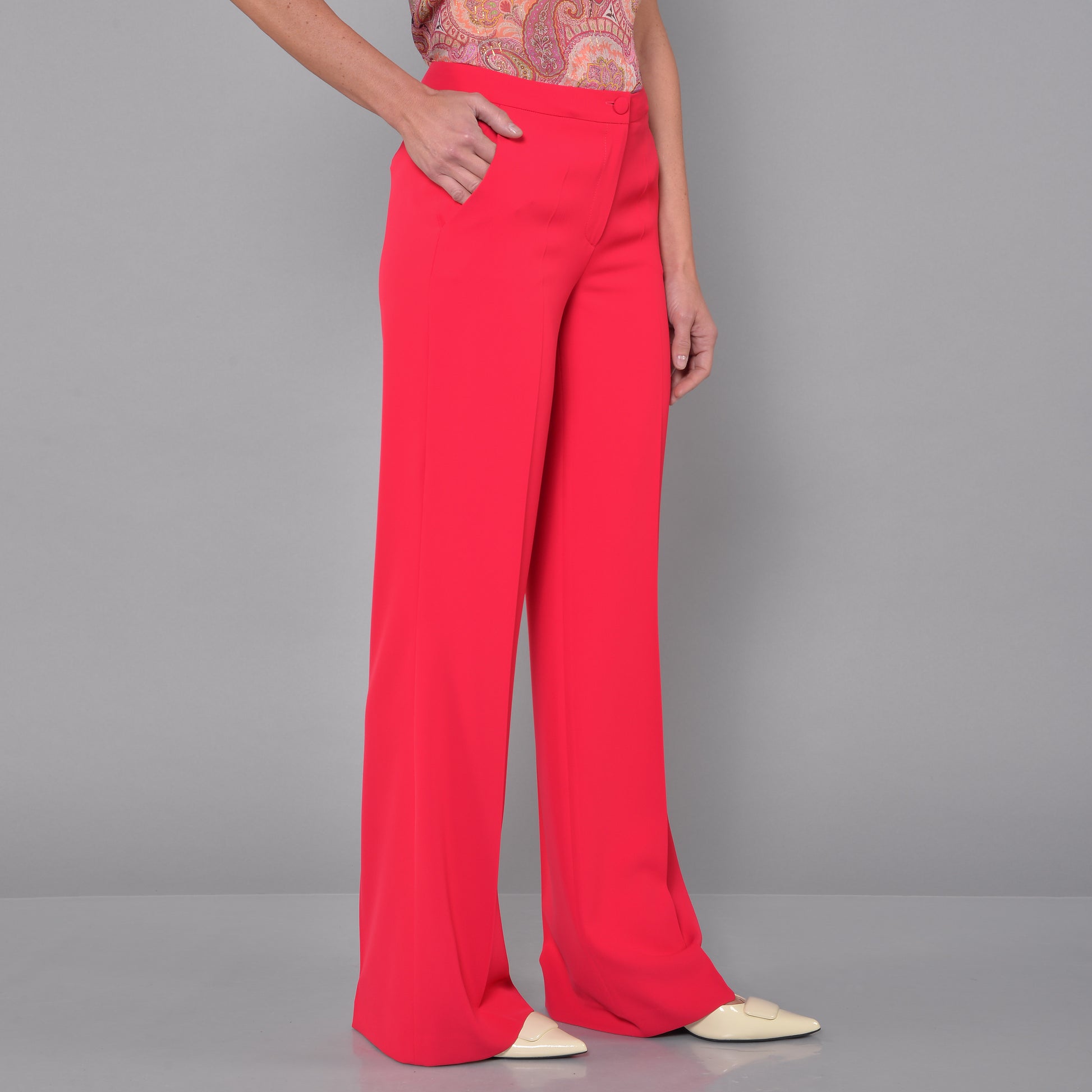 Pantaloni Gamba Larga. Abbottonatura sul davanti con zip e bottone ricoperto nello stesso tessuto. Tasche.