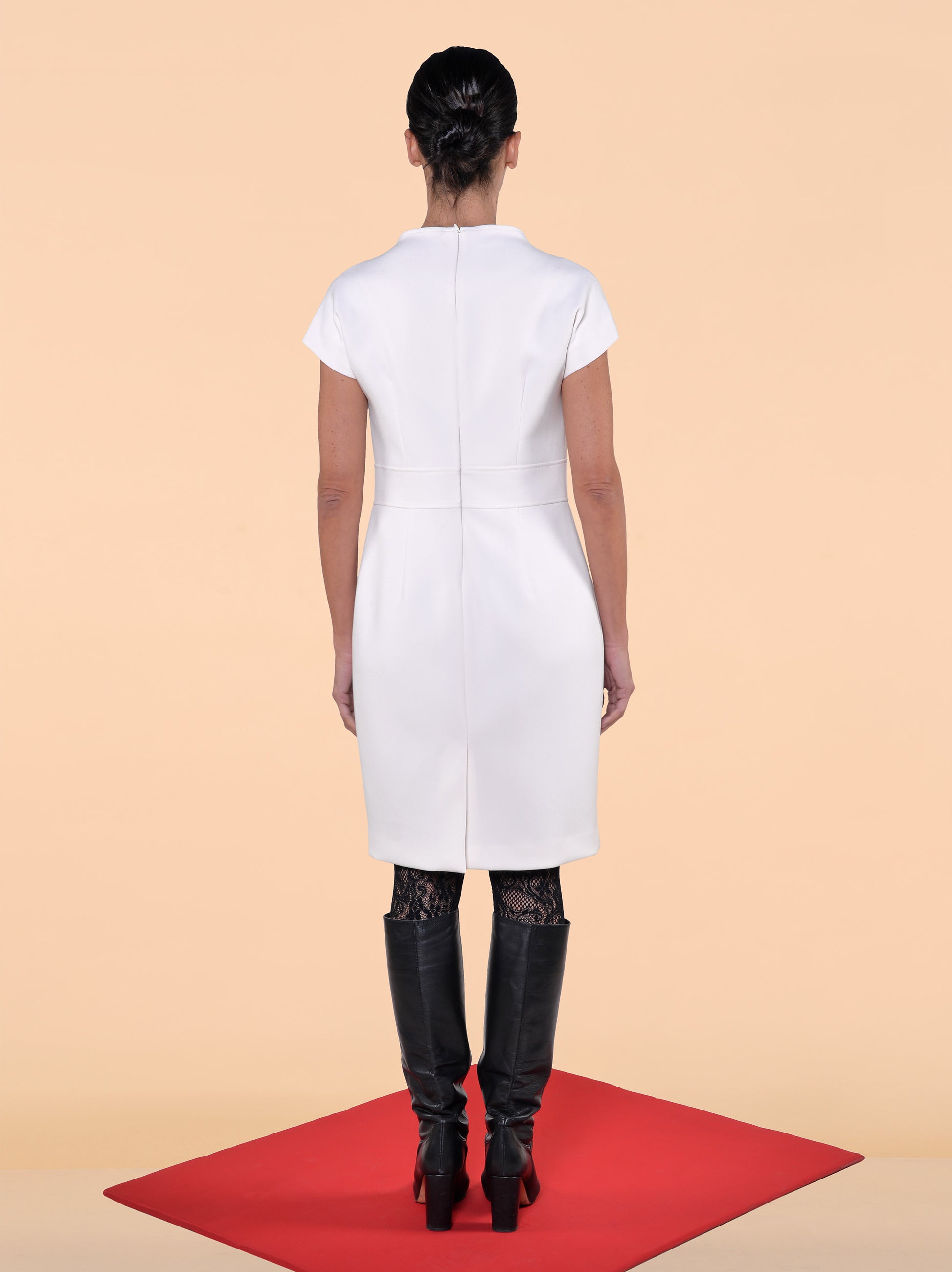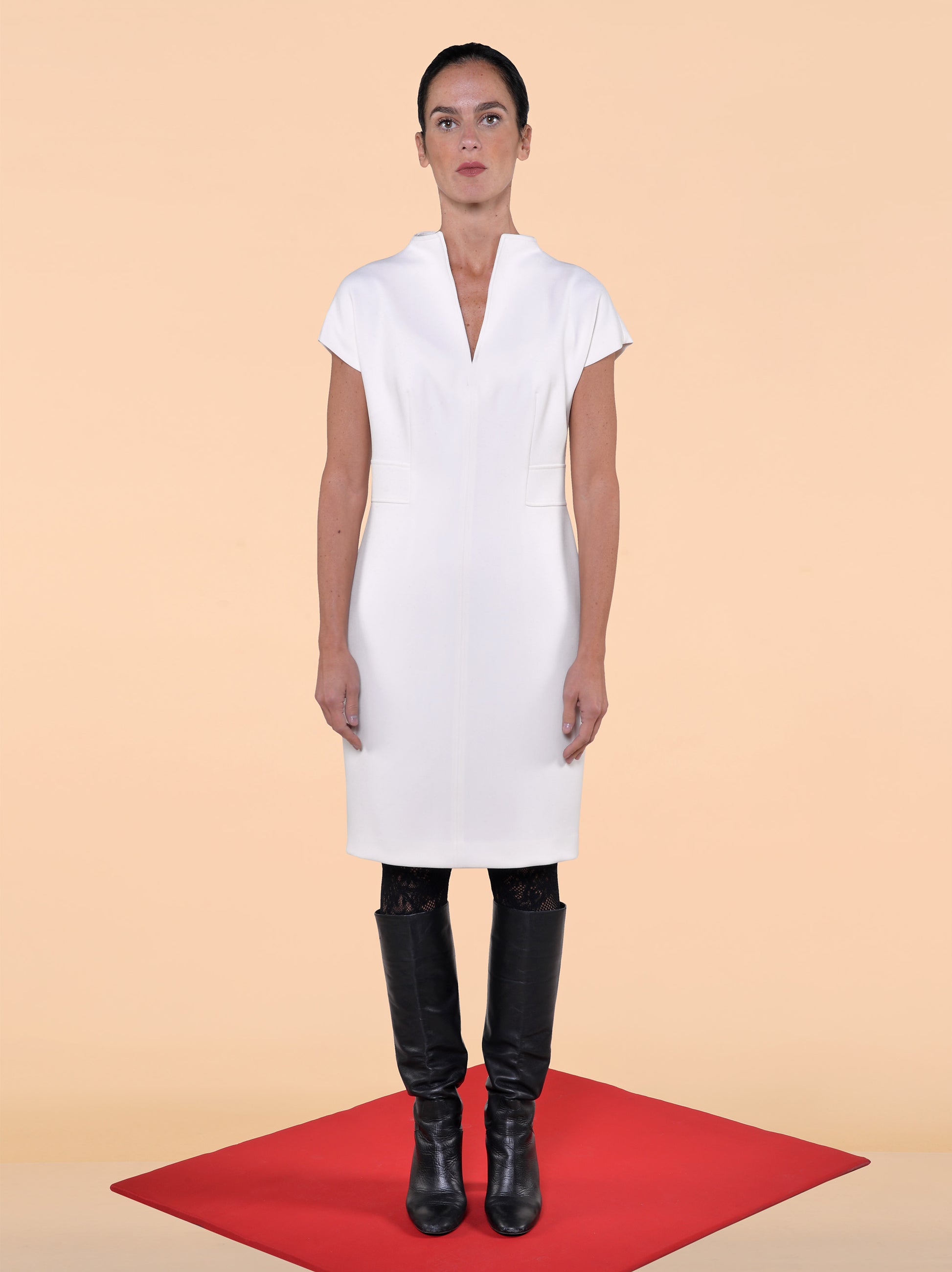 Abito Impunturato in Triplo Crepe. Scollo a V e manica corta.