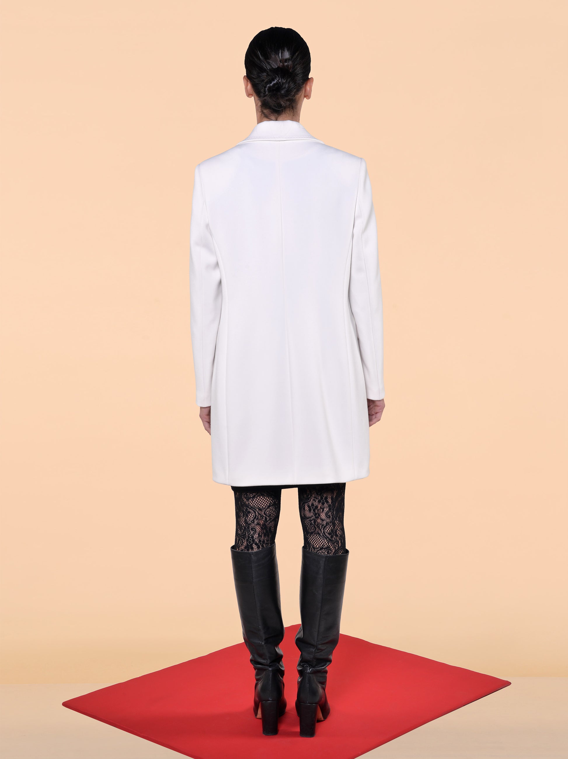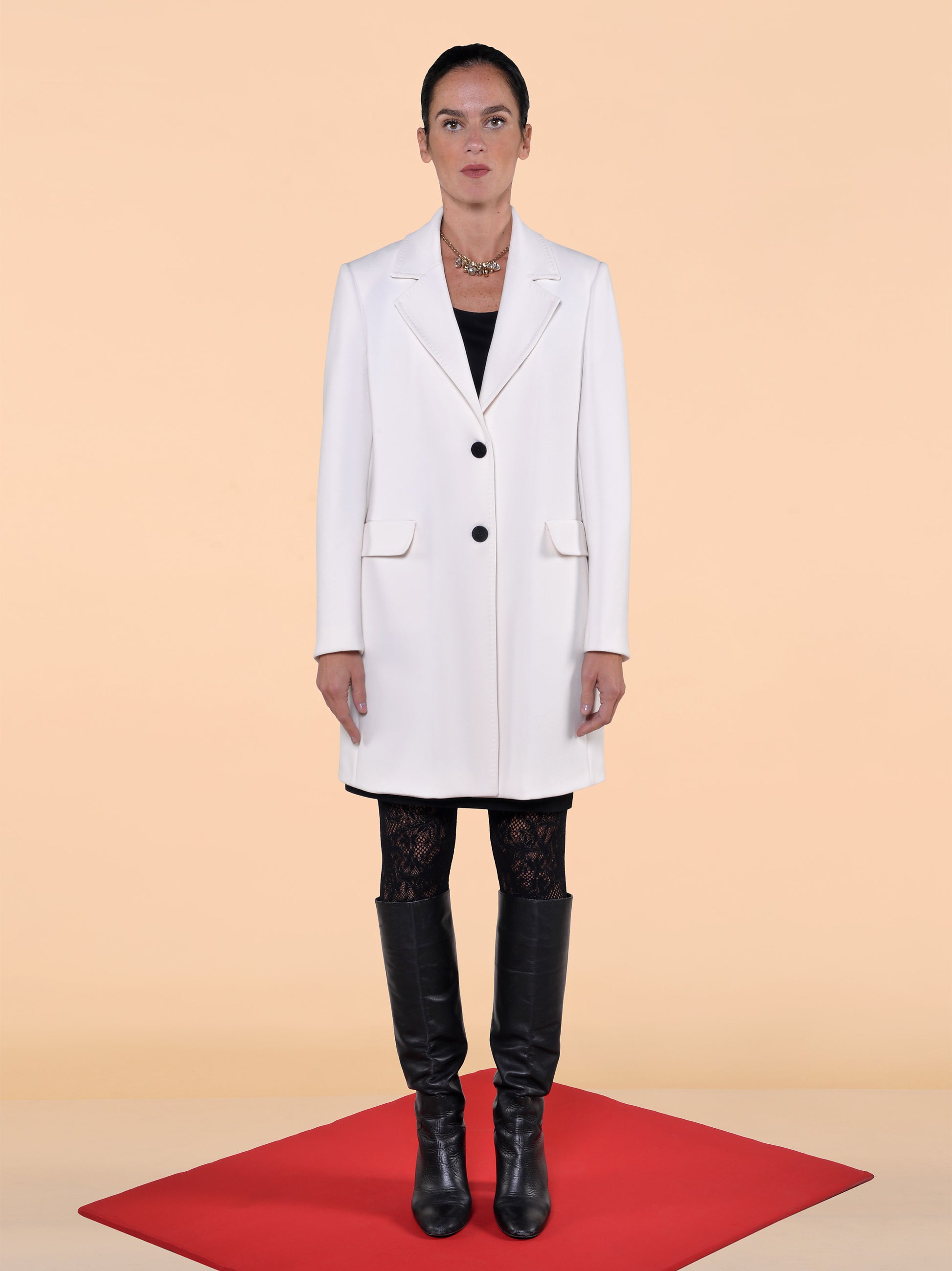 Cappotto Impunturato in Triplo Crepe. Doppio bottone. Tasche con pattine. Manica Lunga.