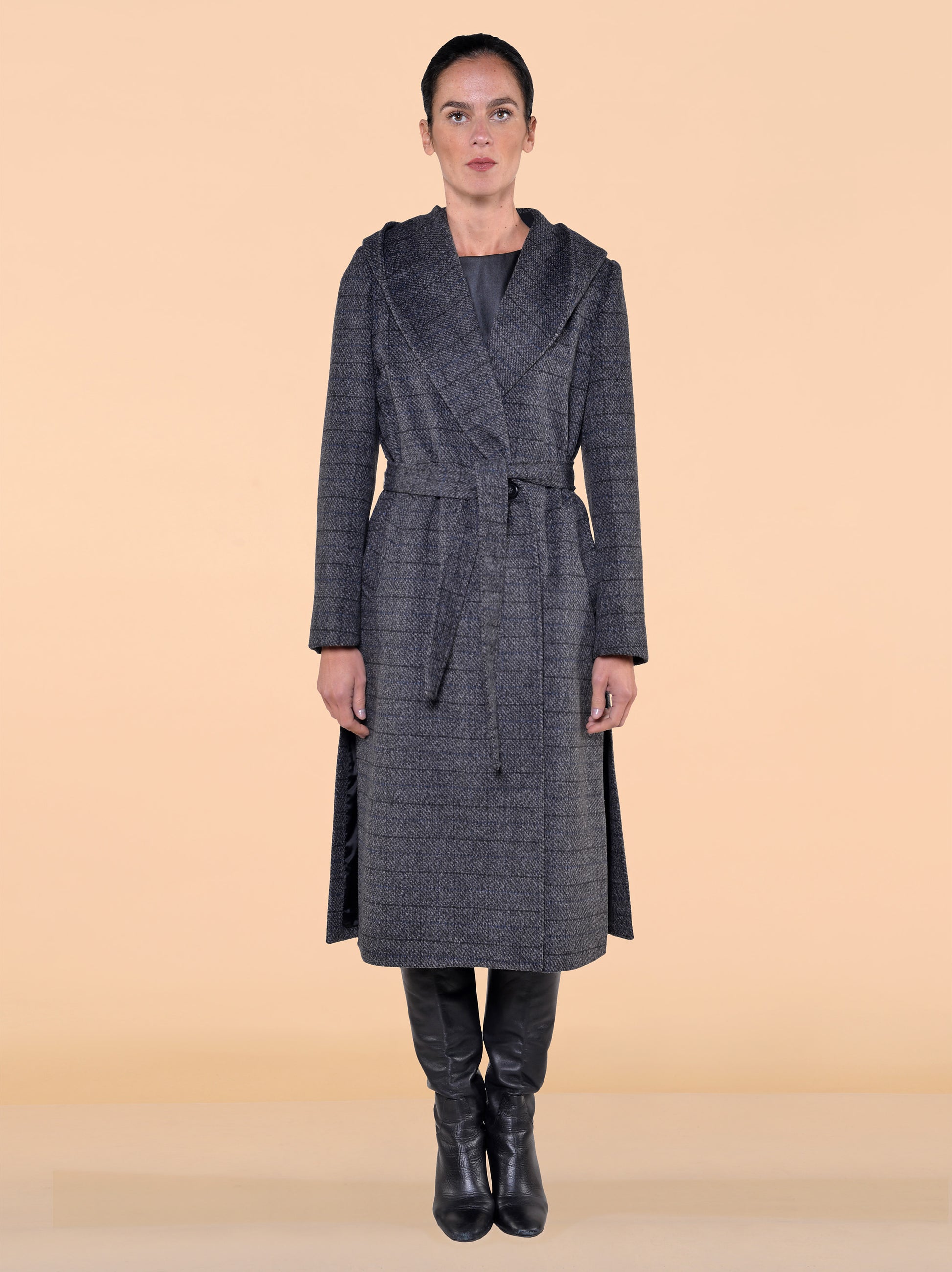 Cappotto Lungo Con Cappuccio e Cintura nello stesso tessuto.