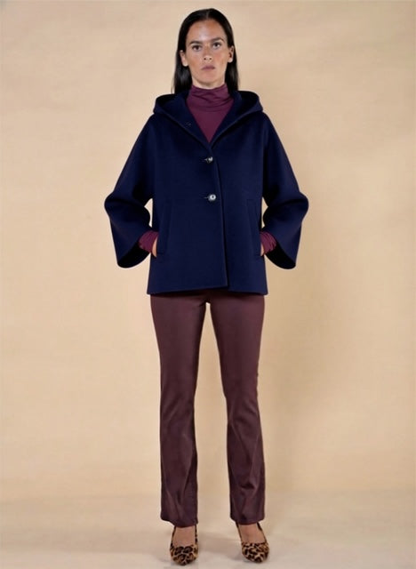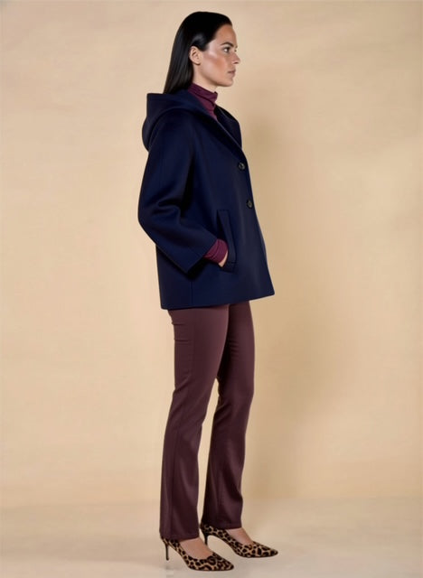 Giaccone con Cappuccio. 4 Bottoni. Manica 3/4 e tasche a filetto.