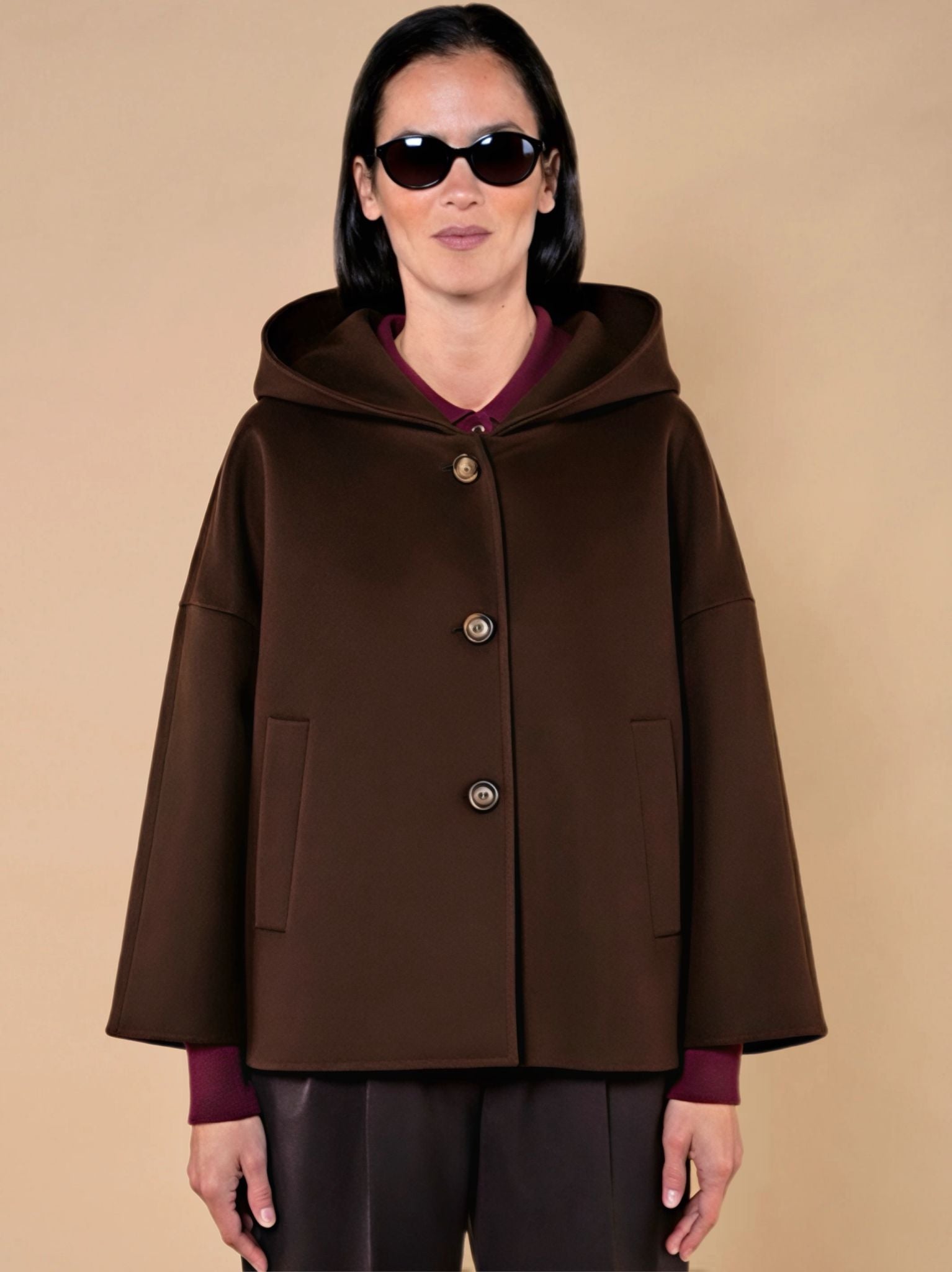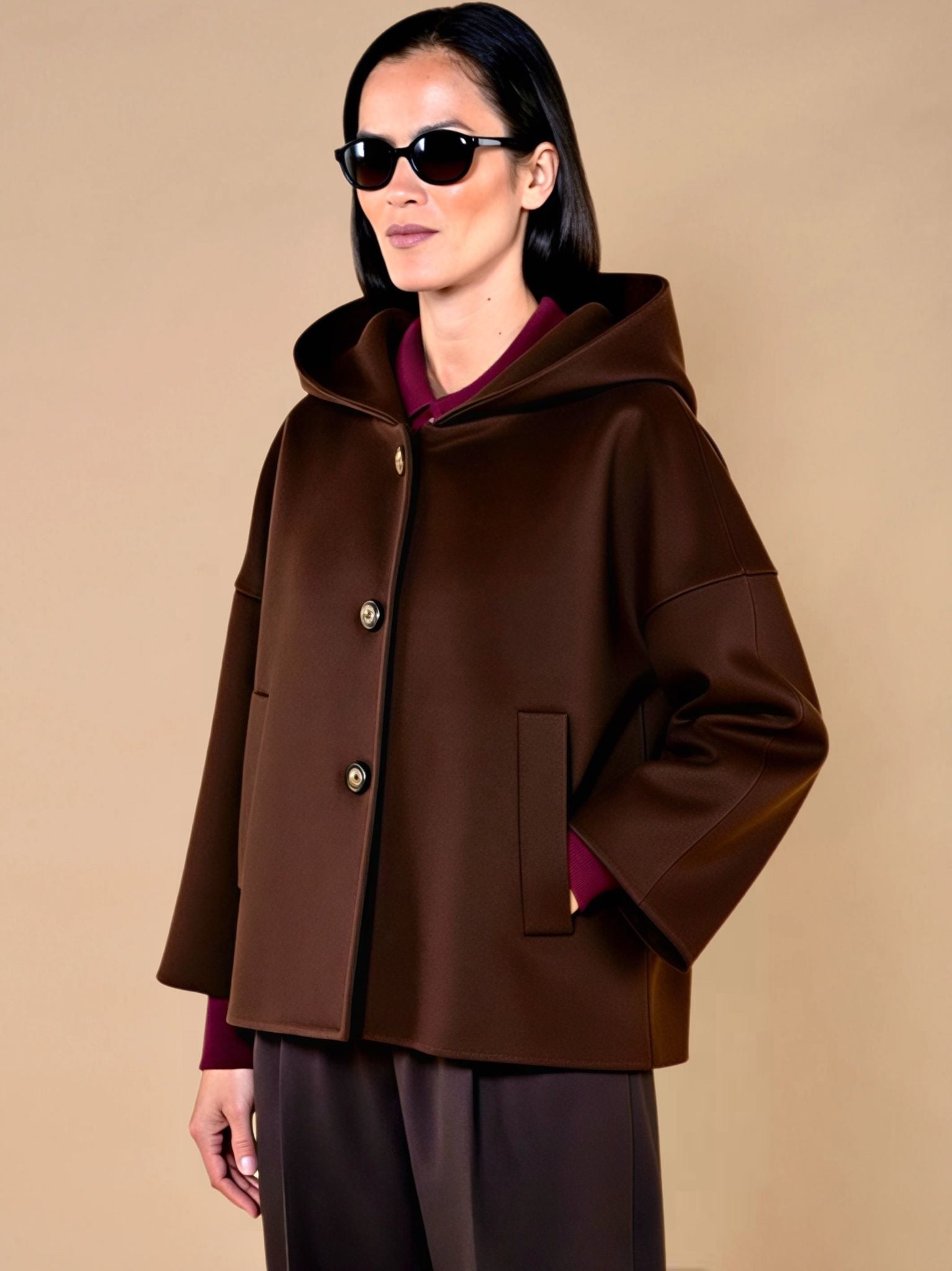 Giaccone con Cappuccio. Manica 3/4 e tasche a filetto.
