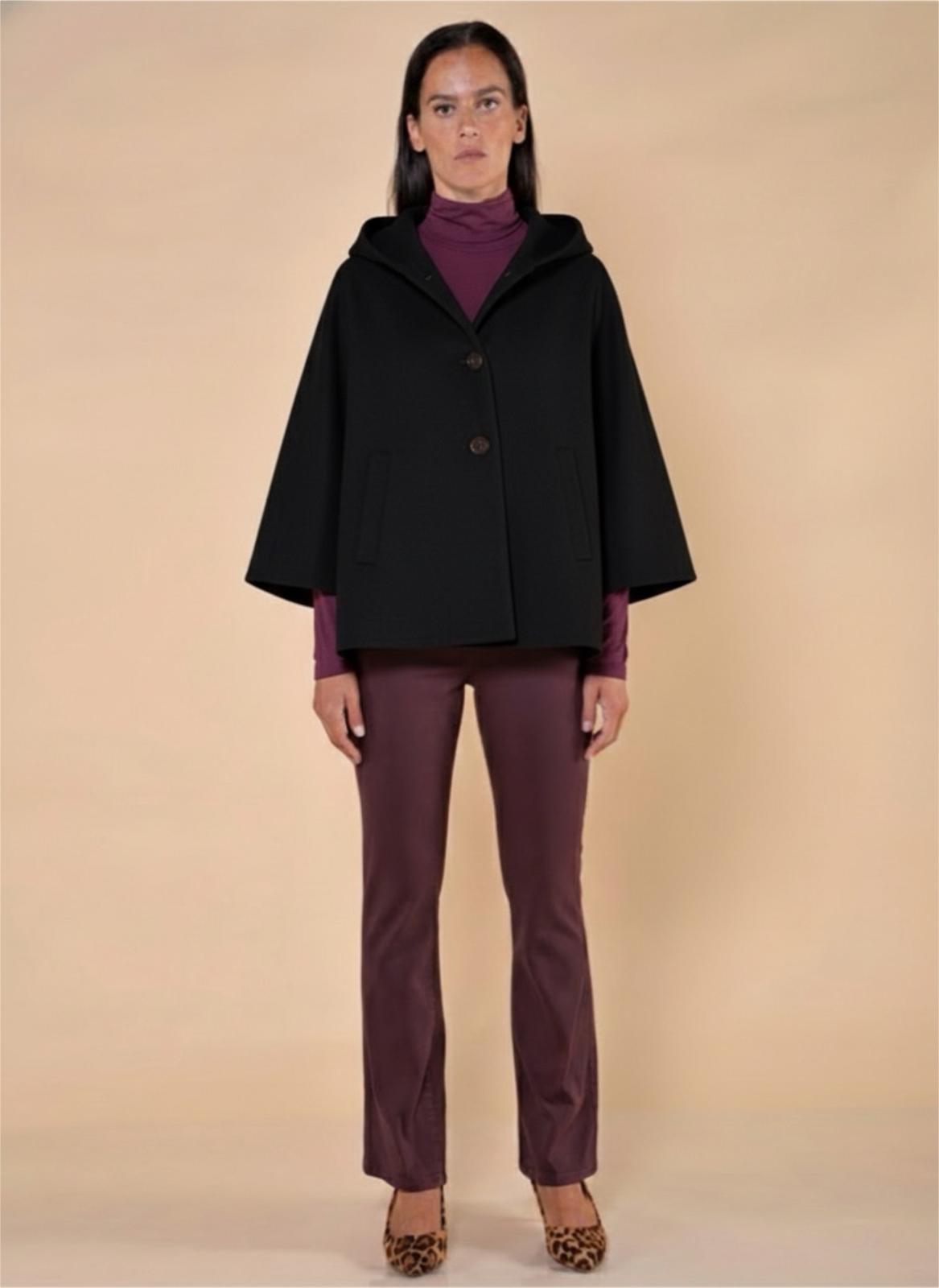 Giaccone con Cappuccio. 4 Bottoni. Manica 3/4 e tasche a filetto.