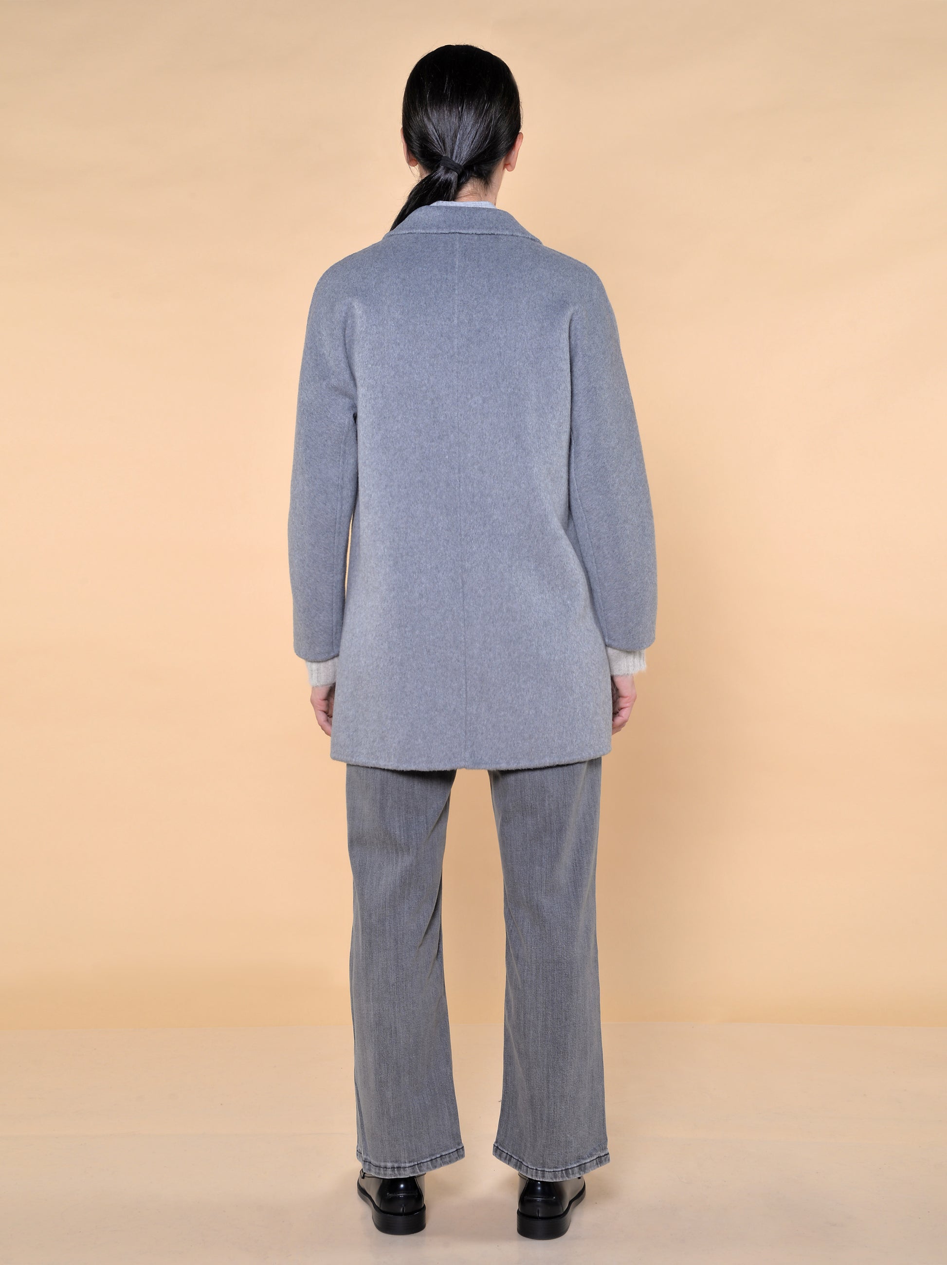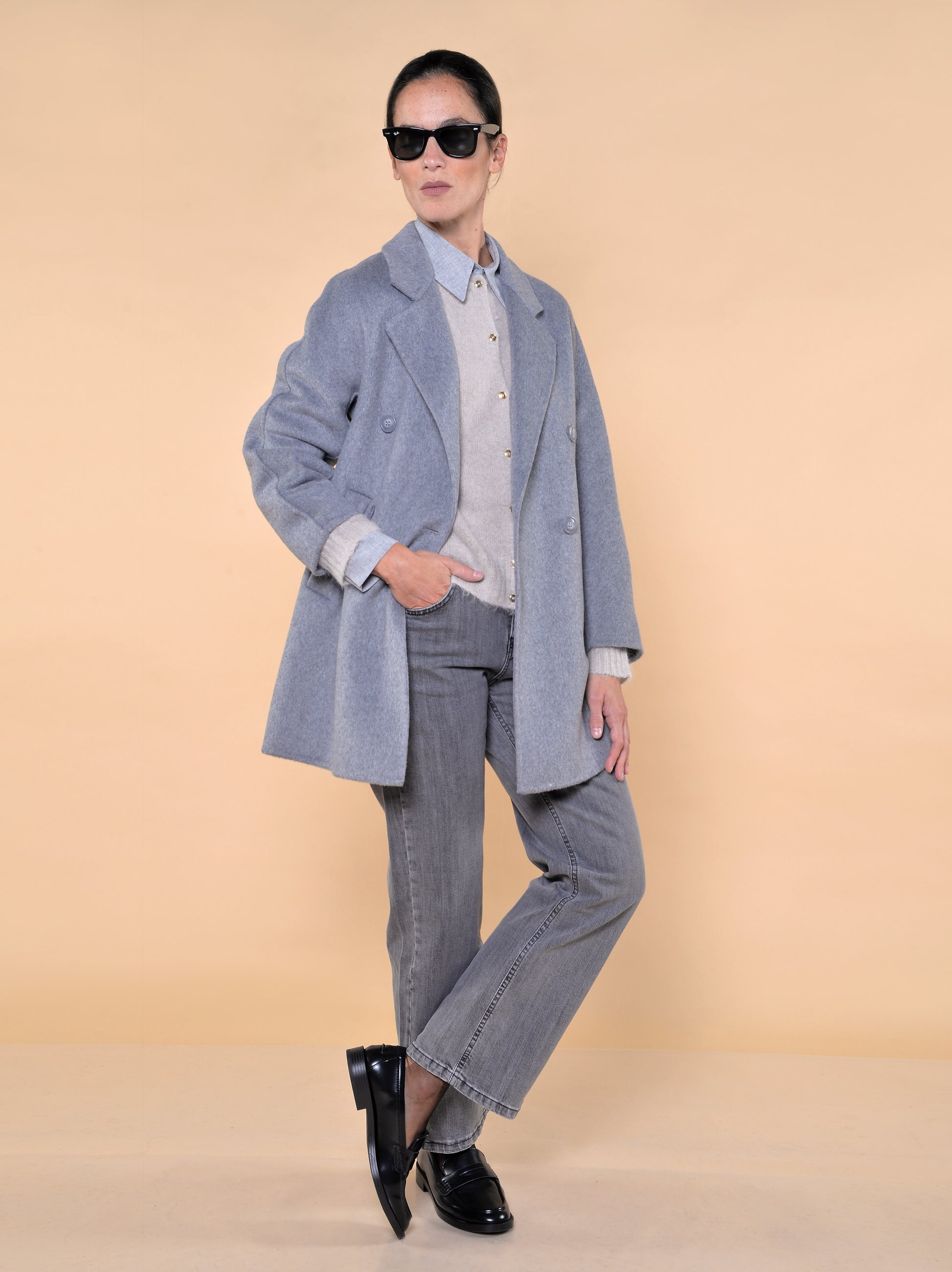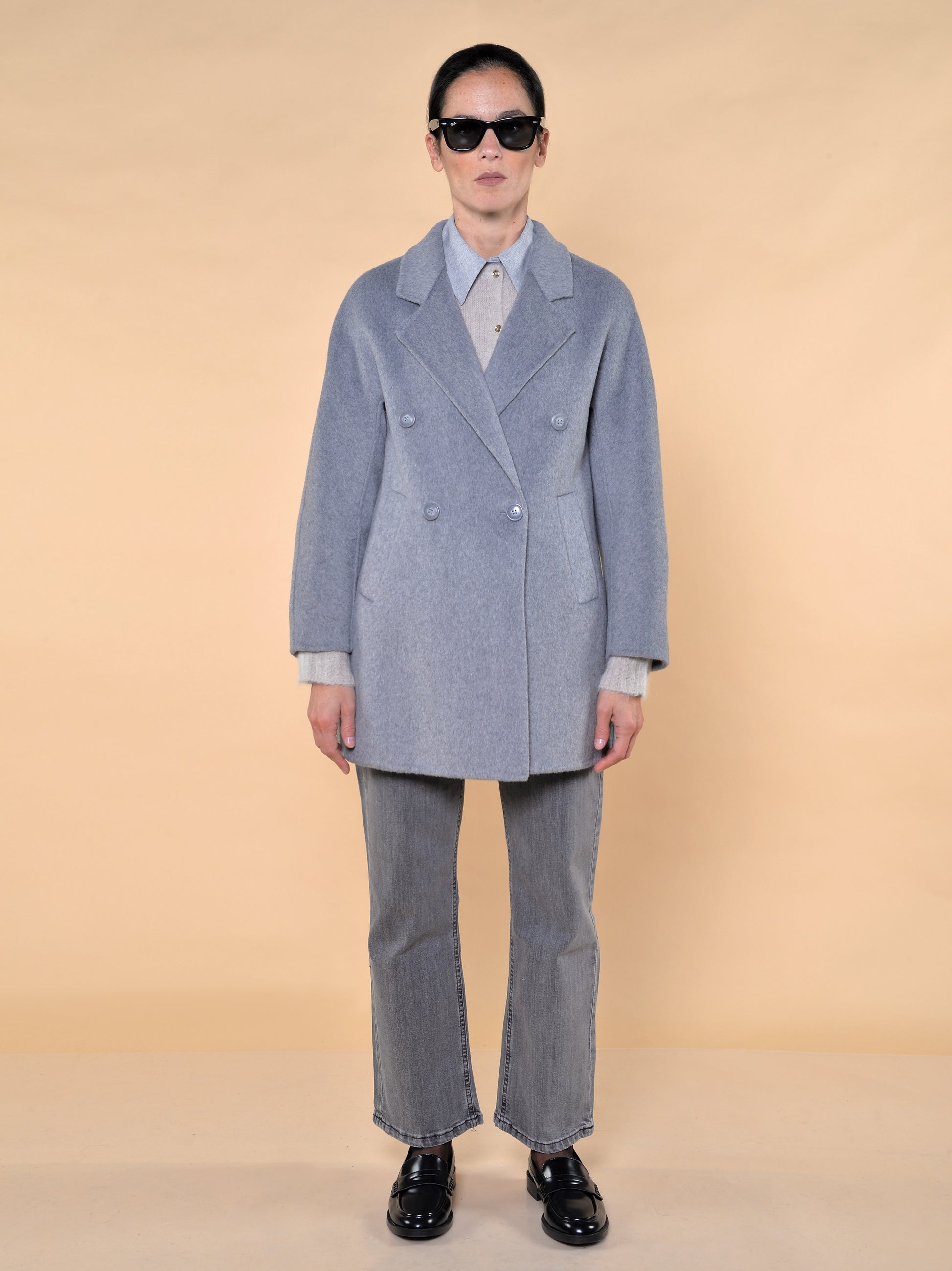 Giaccone Doppiopetto Misto Lana. Manica Lunga Raglan. Tasche.