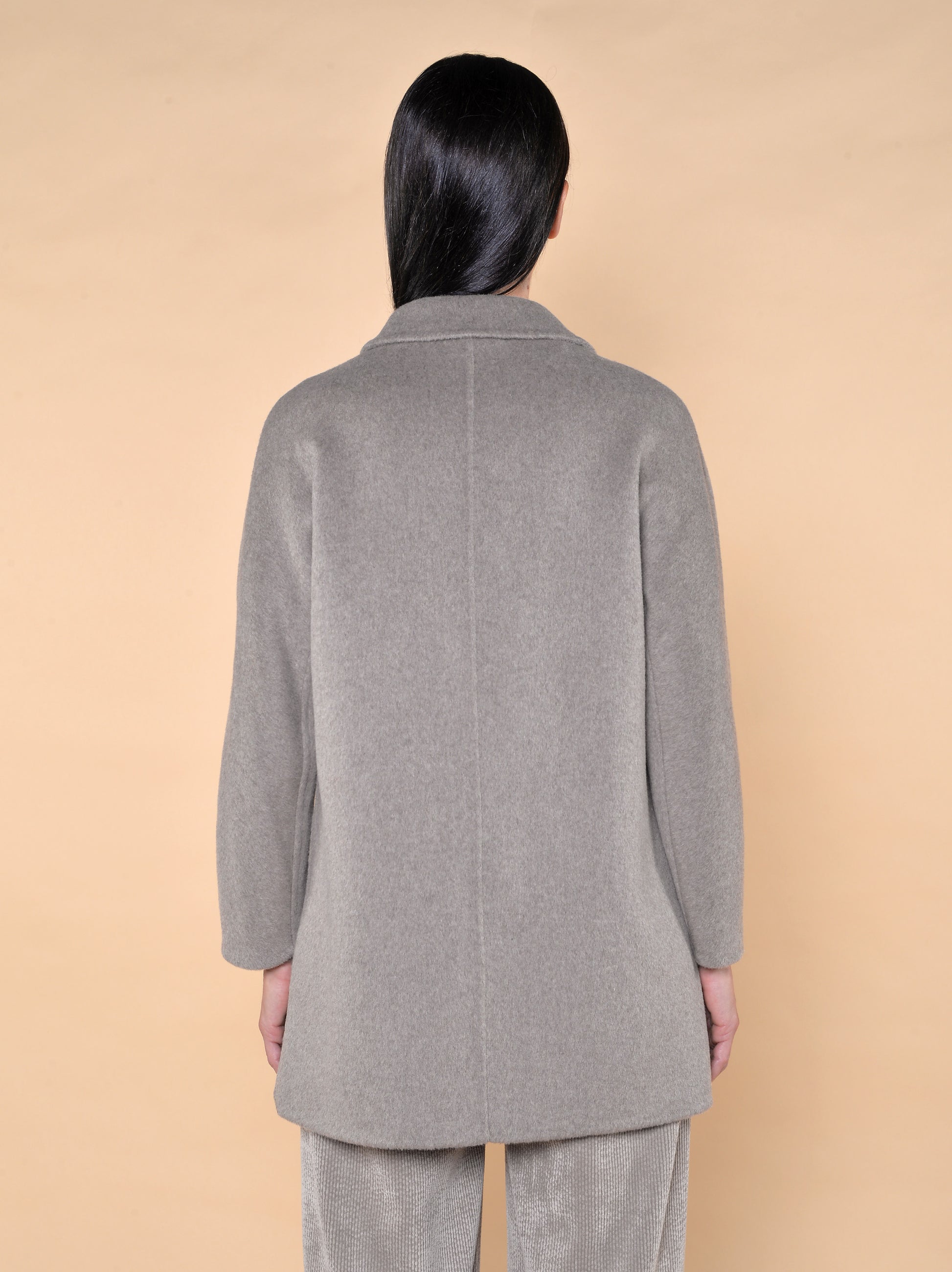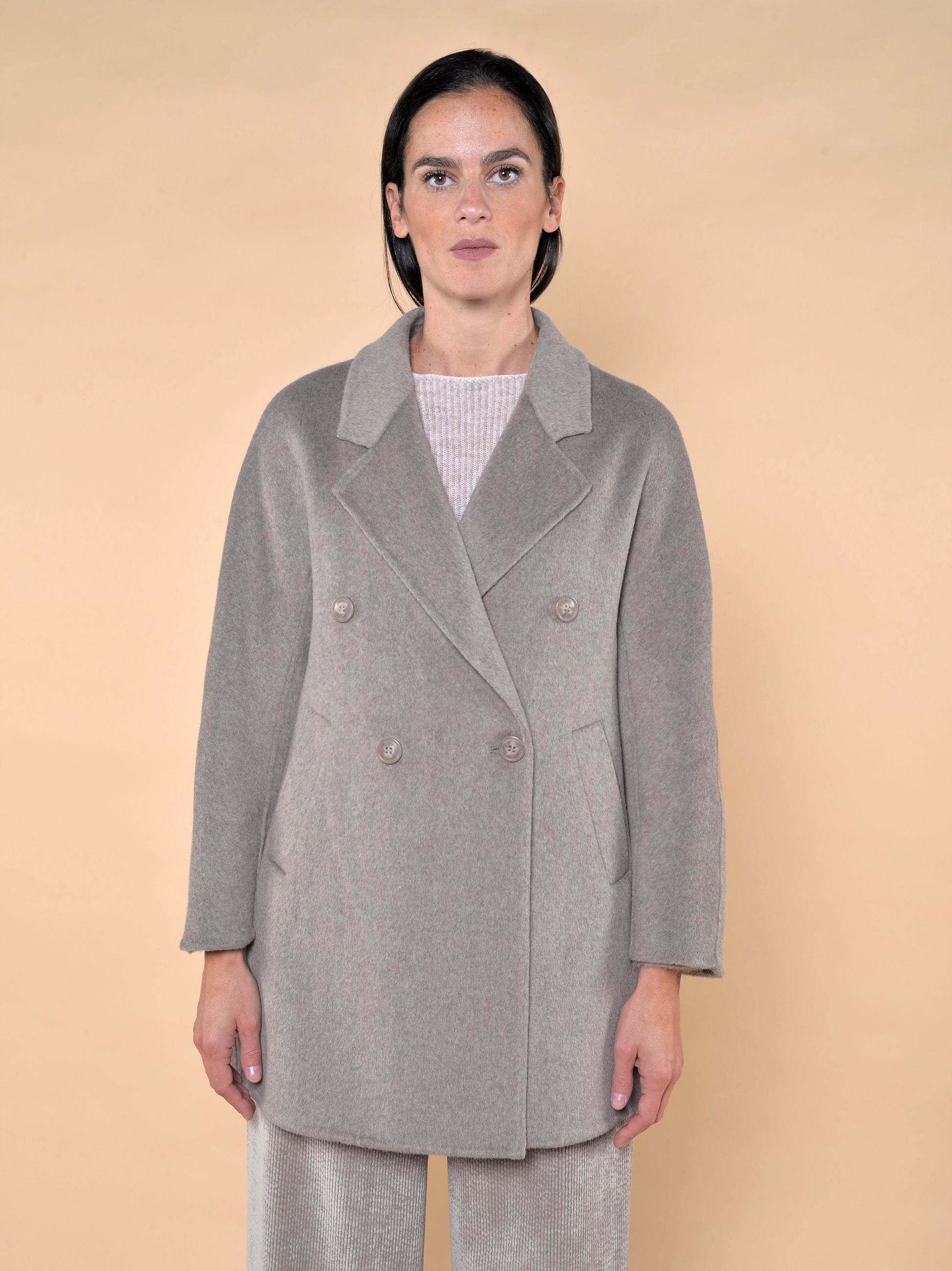Giaccone Doppiopetto Misto Lana. Manica Lunga Raglan. Tasche.