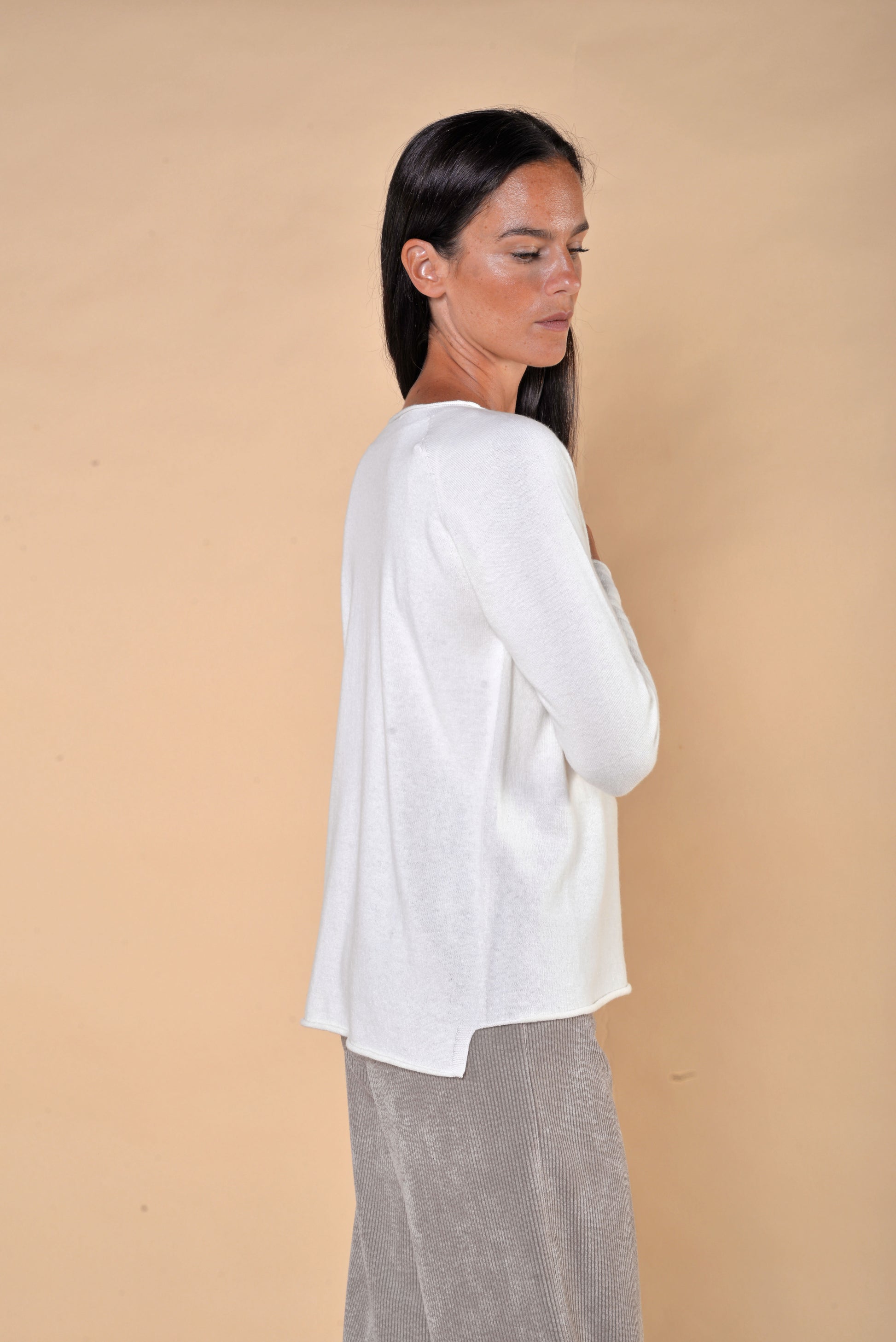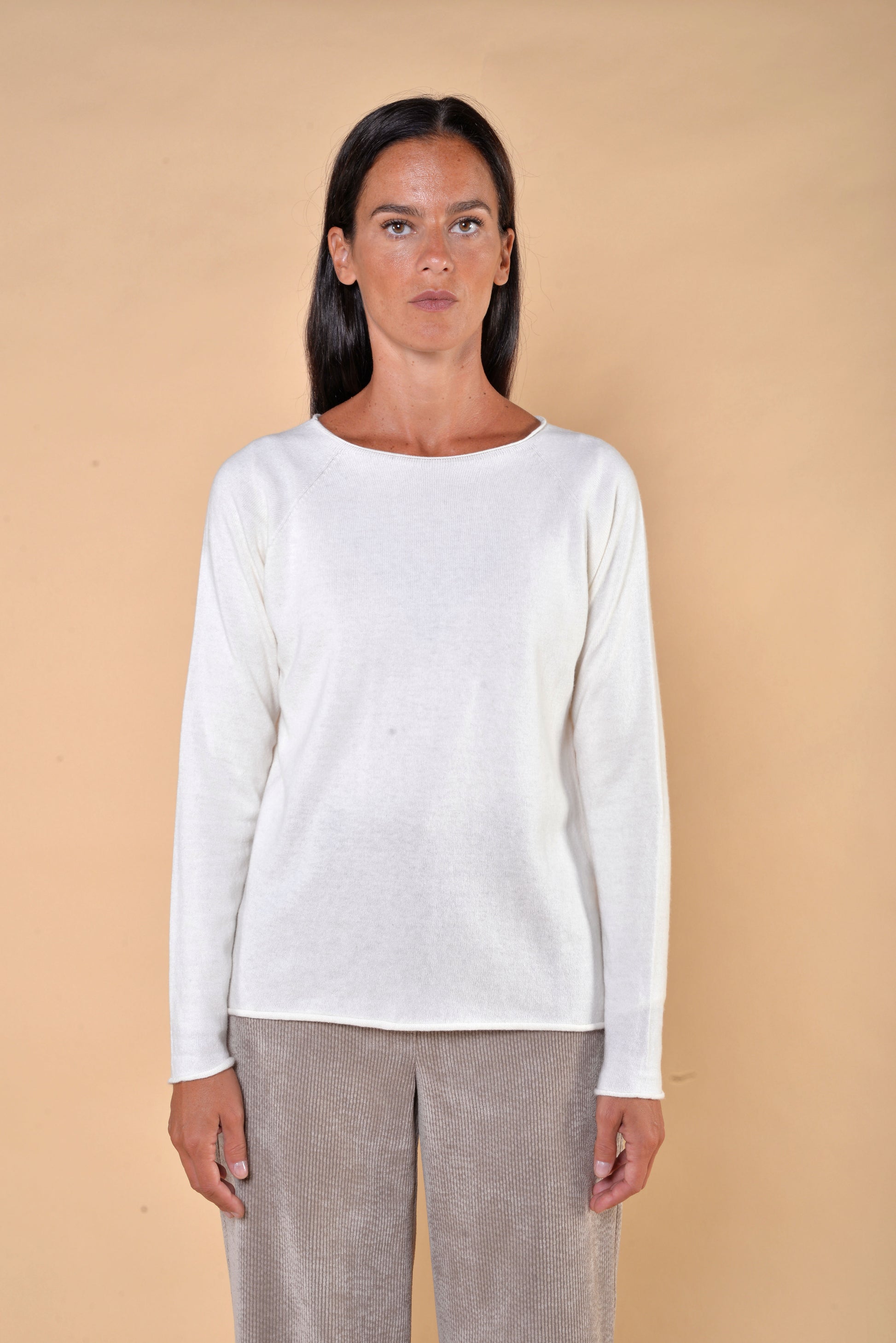 Maglia Girocollo Misto Cachemire Panna. Manica lunga.