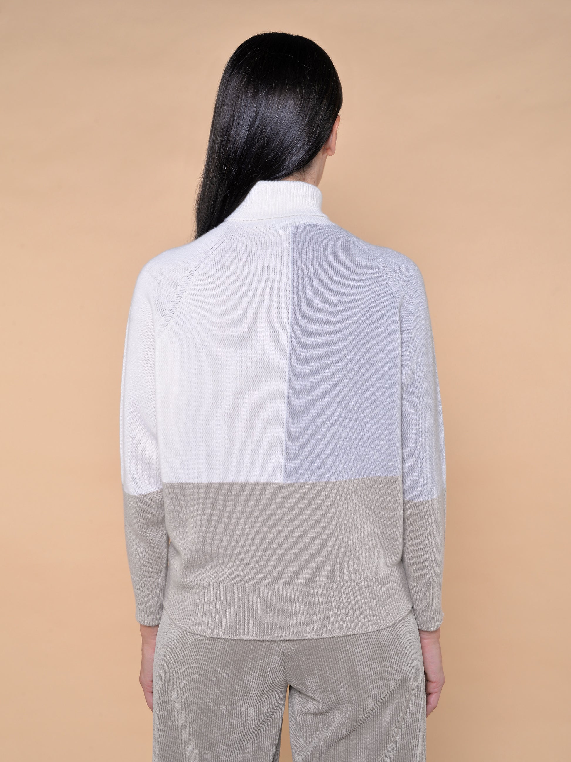 Maglia Color Block 3 Colori realizzata in Misto Lana. Manica Lunga.