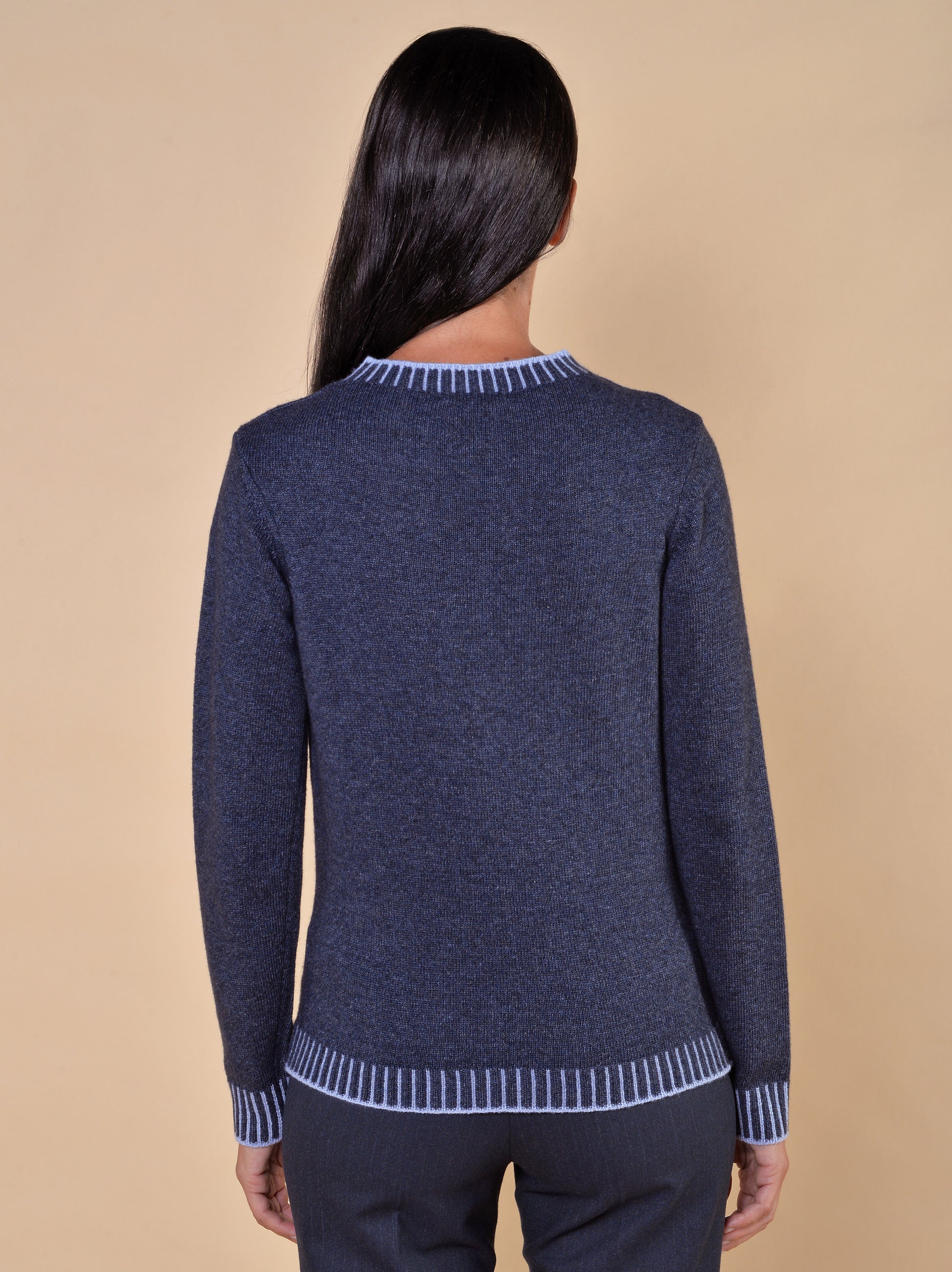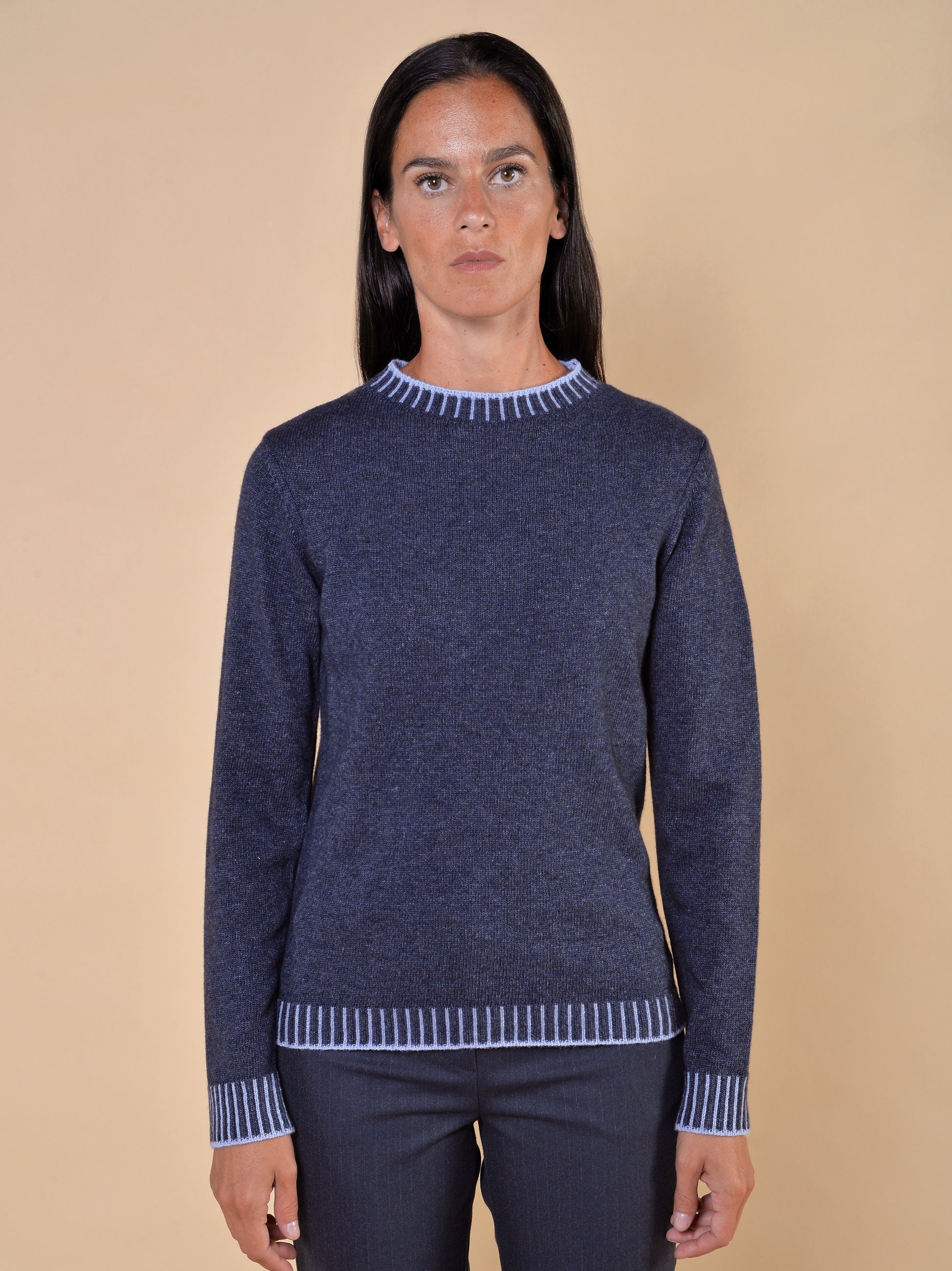 Maglia Con Bordi Bicolori Blu Denim/Nuvola