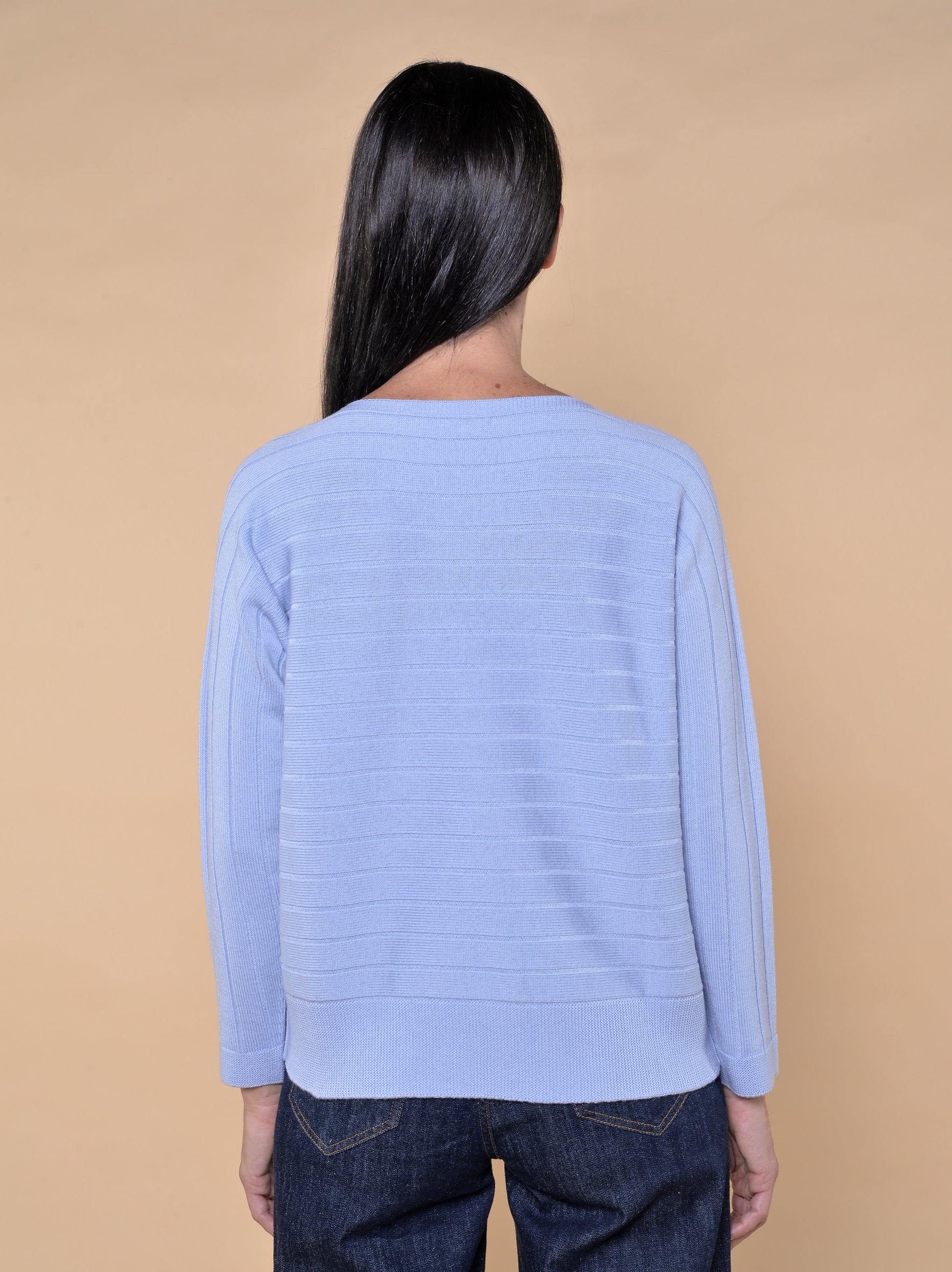Maglia in Pura Lana Vergine a Coste Orizzontali Nuvola