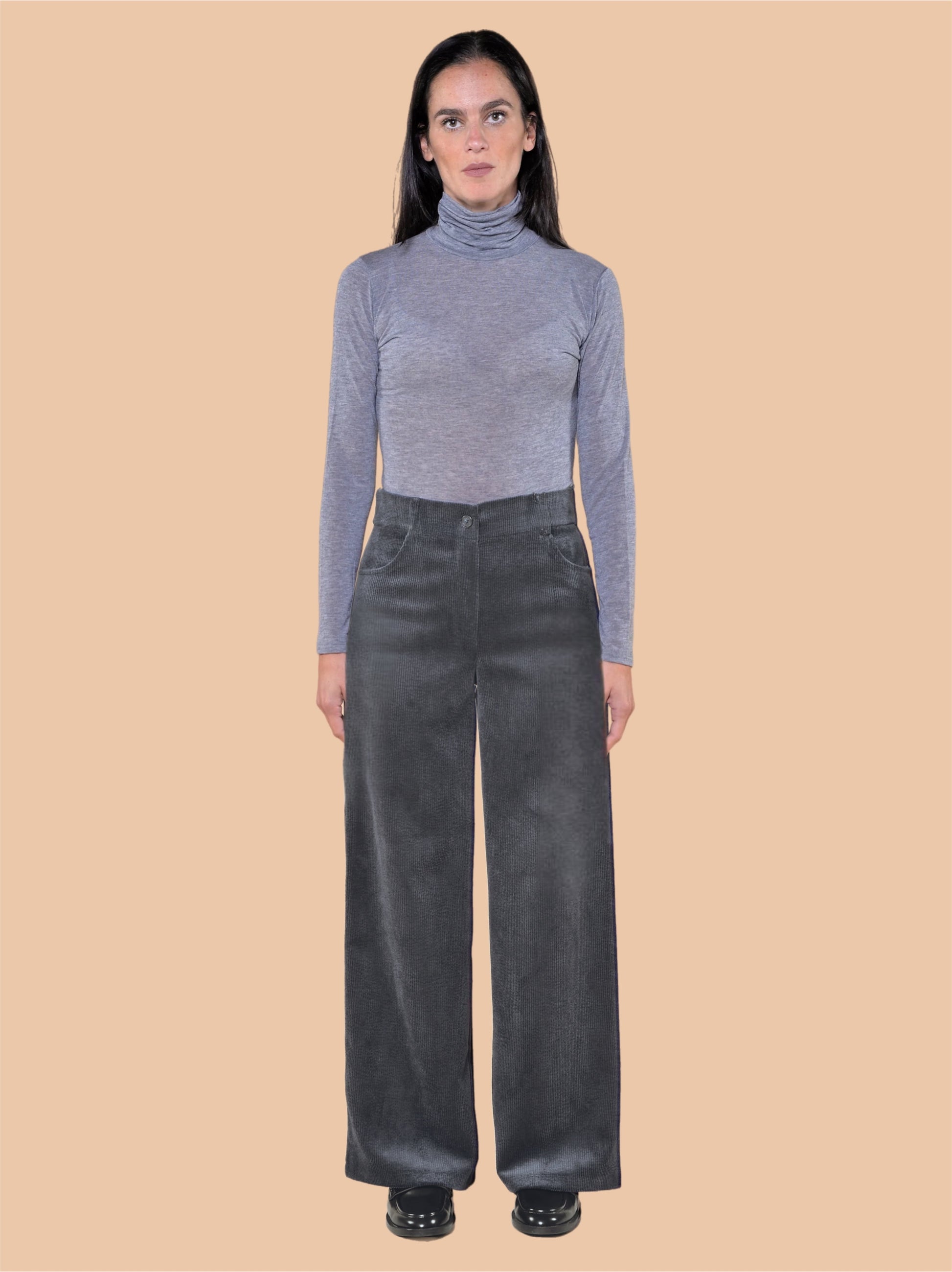 Pantaloni Gamba Larga in Velluto a Coste Grigio
