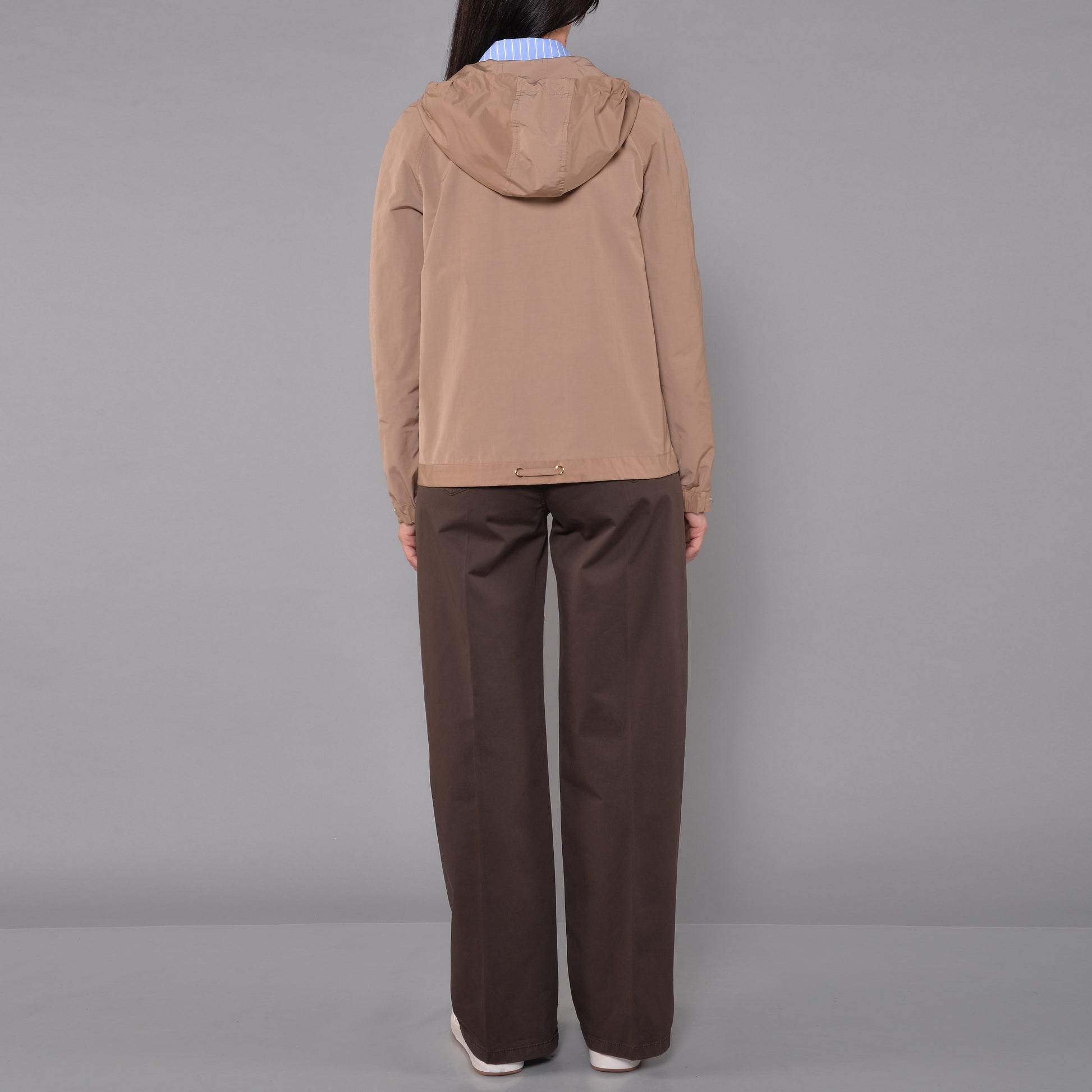 Trench Con Cappuccio e Tasche. Zip e accessori dalla galvanica oro. Manica lunga.
